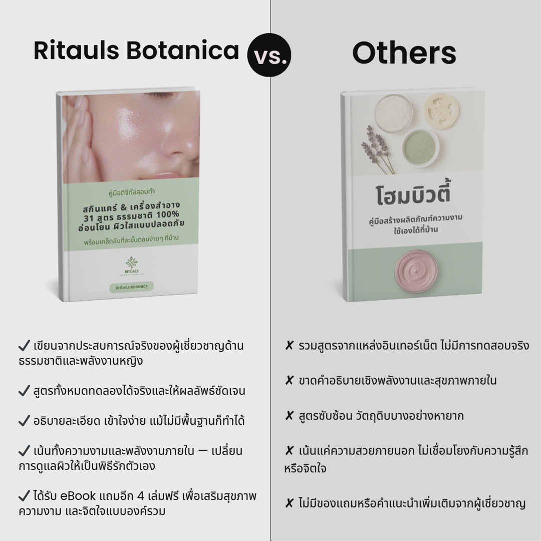 เพราะความตั้งใจของเราไม่ใช่แค่การขายหนังสือ แต่คือการพาคุณไปค้นพบความสุขของการดูแลผิวด้วยสูตรที่ปลอดภัย สุขภาพดี และเป็นธรรมชาติ 100%