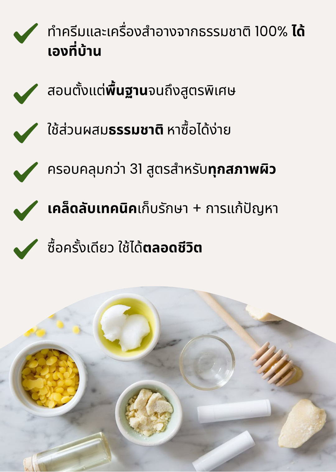 คุณจะได้เรียนรู้วิธีทำผลิตภัณฑ์สกินแคร์และเมคอัพธรรมชาติใช้เองที่บ้าน